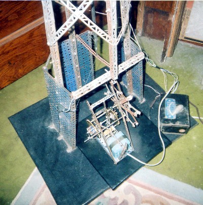 Bill Klein writes: The jump is eight foot six inches tall and fifteen inches across at the base. It is powered with an A49 motor and modified heavy duty winch.