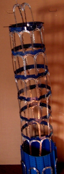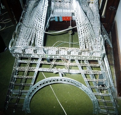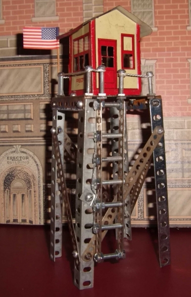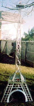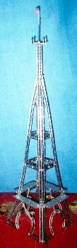 Bill Klein writes: The tower is 8 foot 8 inches tall and has a 3 foot square base. An elevator runs from bottom to top powered by an A49 motor. There are lights on top. I am presently building a 4-foot top for it. The restaurant will be on the old top.