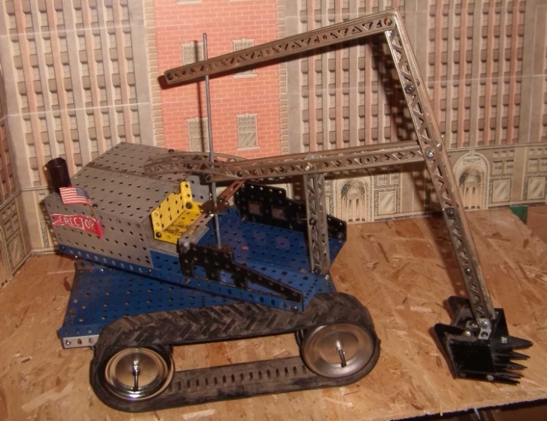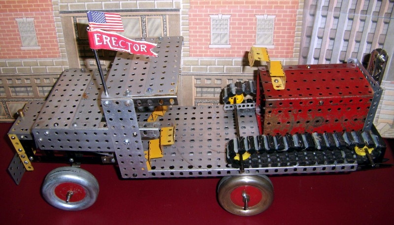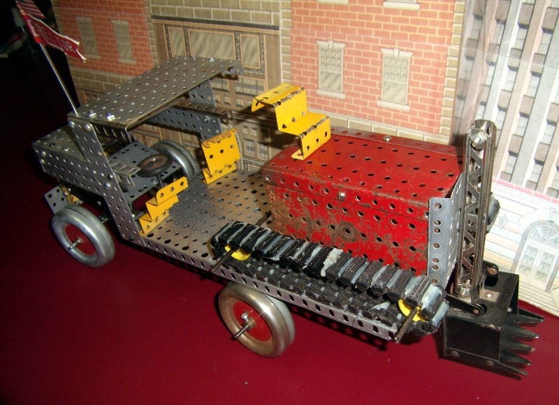 Bill Klein writes: This custom built bulldozer has a large blade, tracks, forward and reverse operation, and a winch on the back.