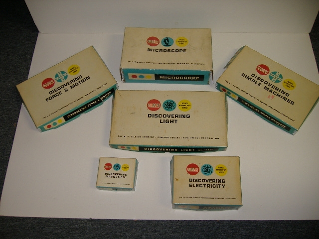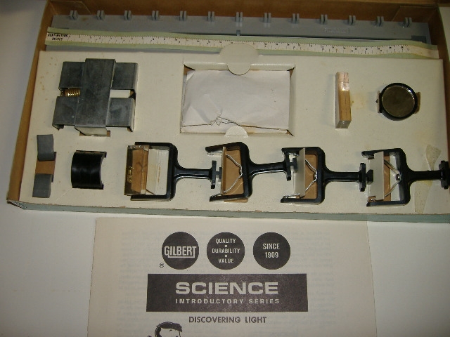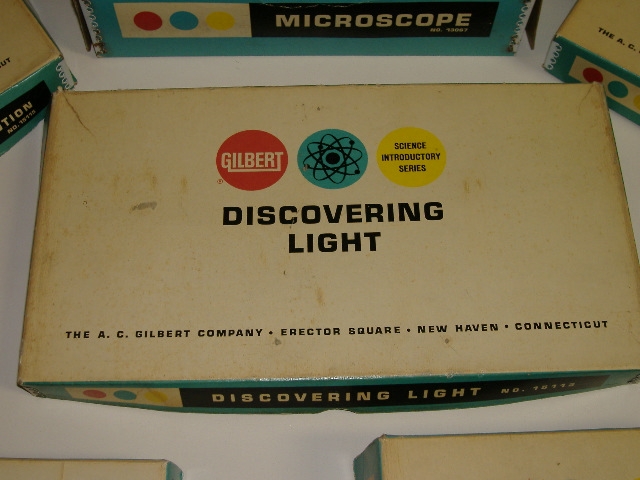 Dan writes: These sets are like little mini versions of the larger, more elaborate sets in the Gilbert toy line. For example, the Discovering Light set is a bare-bones version of the 15100 Physics set. I have six of these sets in my collection, as follows: